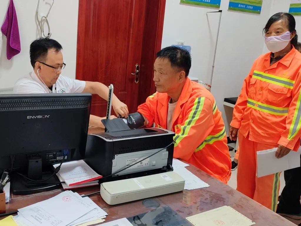 本次体检涵盖有血常规、肝功、胸透、心电图、耳鼻喉口腔等10多项检查项目。体检现场,环卫人员身穿统一工装,手拿体检单,在医务人员的指引下有序地进行着各项体检。体检过程中,医务人员认真地为环卫工人进行细致全面地检查,详细记录了各项体检数据,同时针对个人情况给出具体的保健意见,并向他们宣传健康的生活习惯。