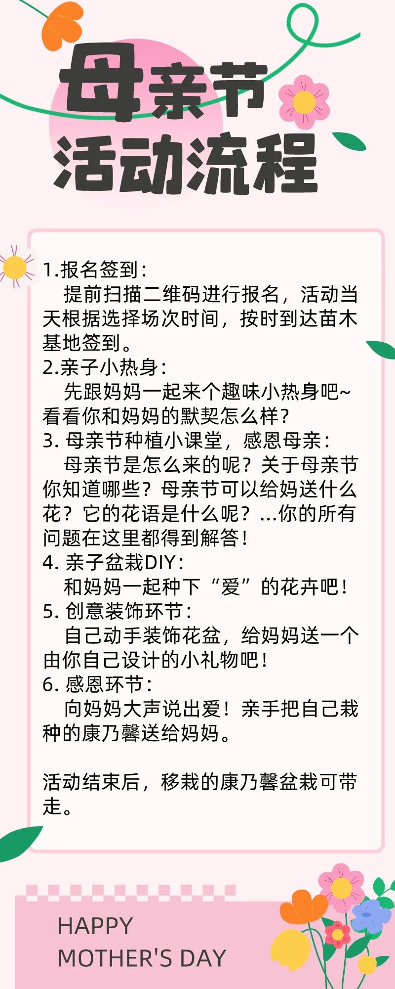移栽种植的康乃馨可带走,现场还有丰富的礼品哦!