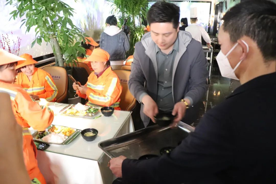 本次关爱环卫工人活动由民建宝鸡市直一支部组织发起,致力于让奋战在城市美容第一线的环卫工人获得更多地尊重。爱心企业散落时光餐厅每周一至周五为环卫工人们免费提供爱心午餐,并在夏季提供降温饮水等服务。散落时光餐厅负责人表示,环卫工人是一群可爱又可敬的人,他们为我们城市的环保工作起早贪黑,不懈奉献,是我们学习的榜样,环卫工人需要得到更多人的理解和尊重。