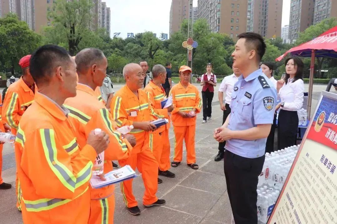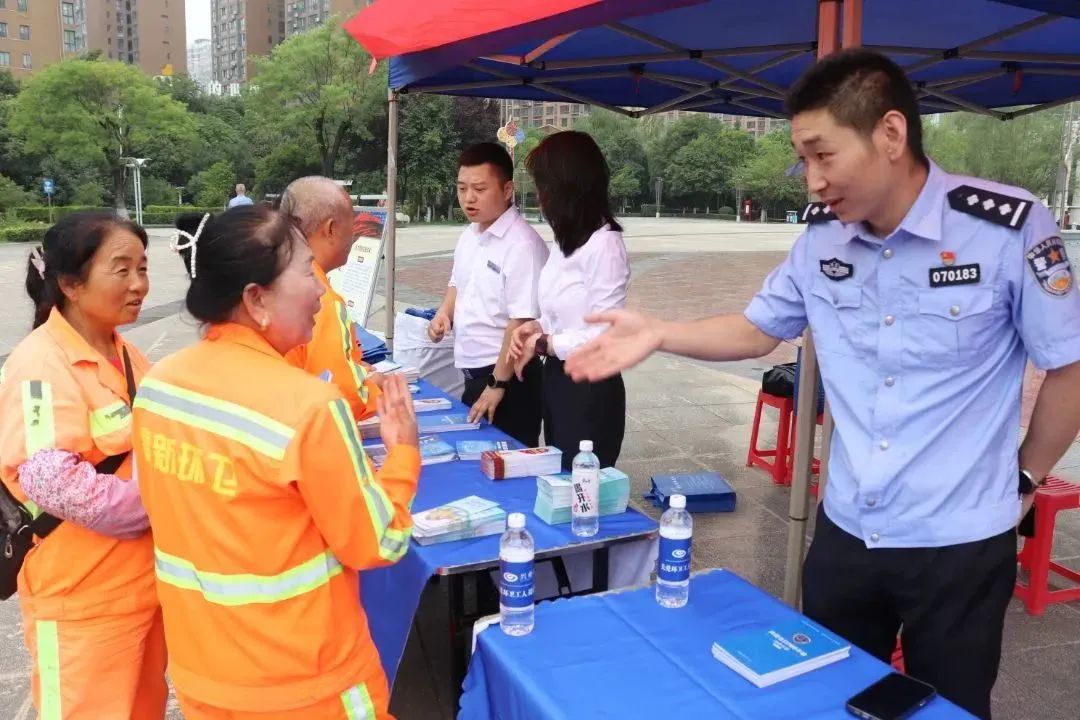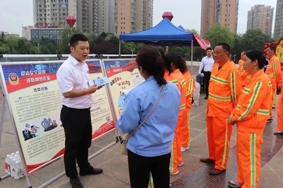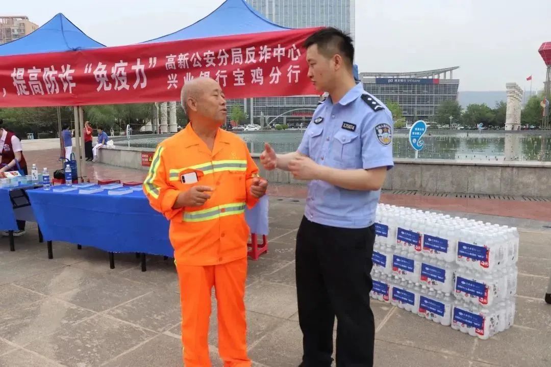 活动中,高新公安分局和兴业银行宝鸡分行的工作人员向大家宣传电信诈骗的各种形式和注意事项,告知大家不要轻易向陌生人透露自己的个人信息、银行卡信息等,不要随意点开陌生链接,同时为大家演示“国家反诈中心”APP各项功能,并当场为环卫人员解疑答惑。