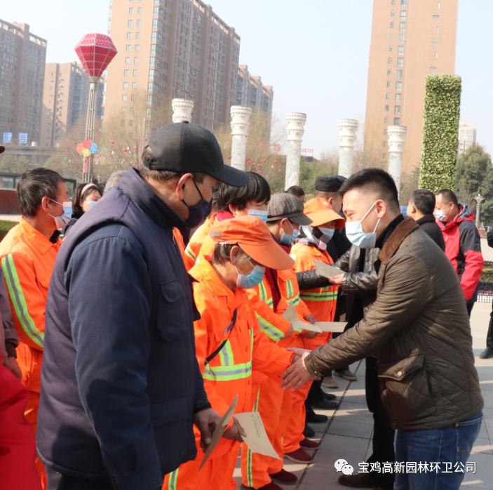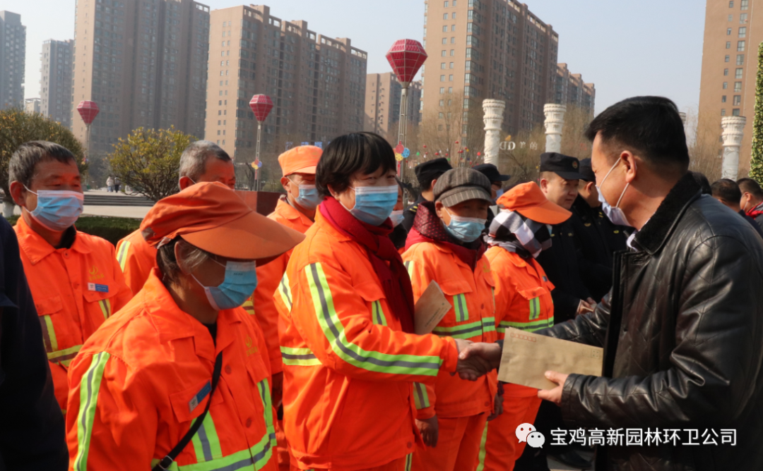 点击蓝字关注我哦2月9日上午,市城管执法局党组成员、副局长张蓉国、副调研员侯世军、环卫管理科科长高纳海、市容管理科科长郑忠宏、环卫管理科副科长宋瑨、高新区住建局副局长韩念昆前往高新广场看望慰问环卫工人,并送去新春的祝福。活动现场,慰问领导与15名环卫工人一一握手,感谢他们为洁净有序的城市环境所付出的艰辛,并为环卫工人们送上慰问金。此次慰问活动使环卫工人深切的感受到了党和政府的关怀与温暖,纷纷表示,在新的一年里将继续发扬“宁愿一人脏,换来万家洁”的环卫精神,用辛勤汗水换来城市环境的整洁优美和人民群众的安居乐业,为提高城市品位、擦亮城市名片做出自己应有的贡献,在平凡的岗位上做出不平凡的业绩。牛年大吉春节快乐·阖家幸福