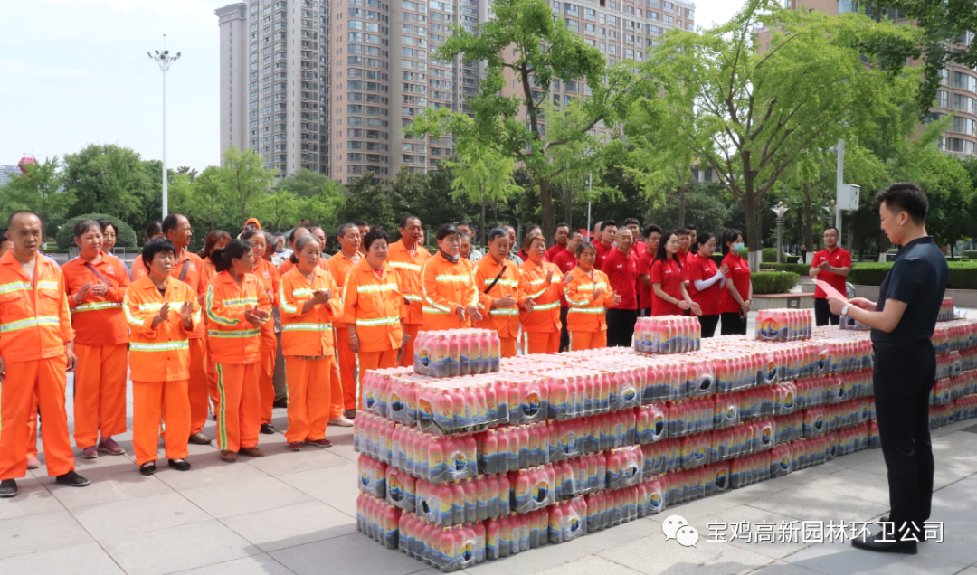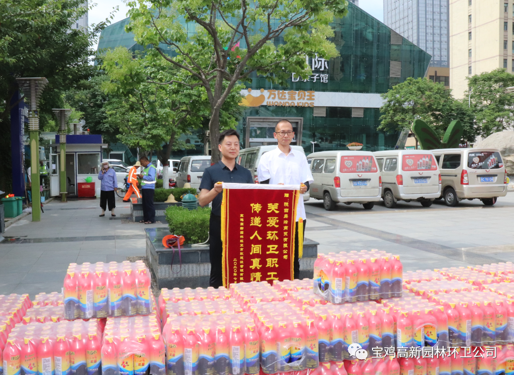 烈日炎炎,大街小巷随处可见环卫工人忙碌的身影,为了表达对环卫工人的关爱和祝福。陕西鼎峰商贸有限公司为骄阳下依然坚守岗位的环卫工人们送去清凉消暑的能量饮品200件,感谢环卫工人为城市环境整洁卫生做出的贡献。赠送锦旗表心意陕西鼎峰商贸负责人表示:“环卫工人不分酷暑严寒、奋战在清洁城市改善环境的第一线,勤勤恳恳的工作,美化、净化我们的城市,我们愿意为这群可爱的劳动者献上一份诚挚的敬意和谢意。”此次慰问活动让园林环卫工人感受到来自爱心企业的关怀,环卫工人纷纷表示“感谢爱心企业对我们的关爱,也感谢社会对我们工作的支持,我们将继续发扬‘宁愿一人脏,换来万家净’的精神,以更加努力和饱满的工作热情,投入到环卫工作中,不怕苦、不怕脏、不怕累,用实际行动回报社会对环卫工作的关心和支持。”-扫码关注我们-