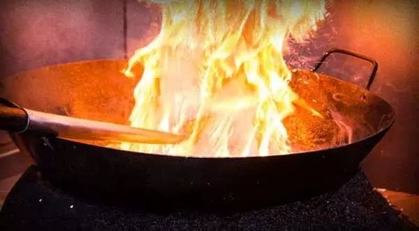 ▲油锅起火时,不要慌张,首先要关闭燃气,随后可用锅盖、湿毛巾覆盖,使油锅内燃烧物与空气隔绝,将火焰熄灭,切记不要直接用水扑救,以防油飞溅引起更大的火灾。