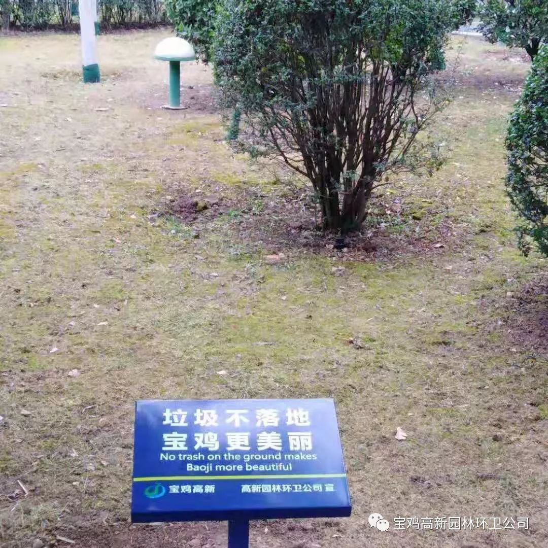 高新园林环卫公司在宝鸡高新大道一至六路的绿化带、高新广场、滨水生态园和渭河公园共安装了200个“垃圾不落地 宝鸡更美丽”的提示牌,给广大市民带来了缕缕文明清风。