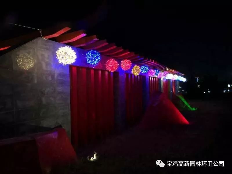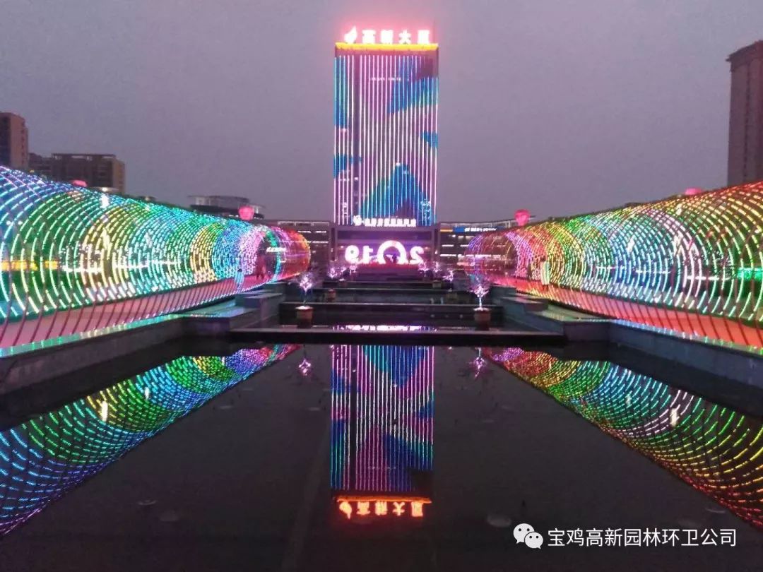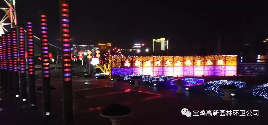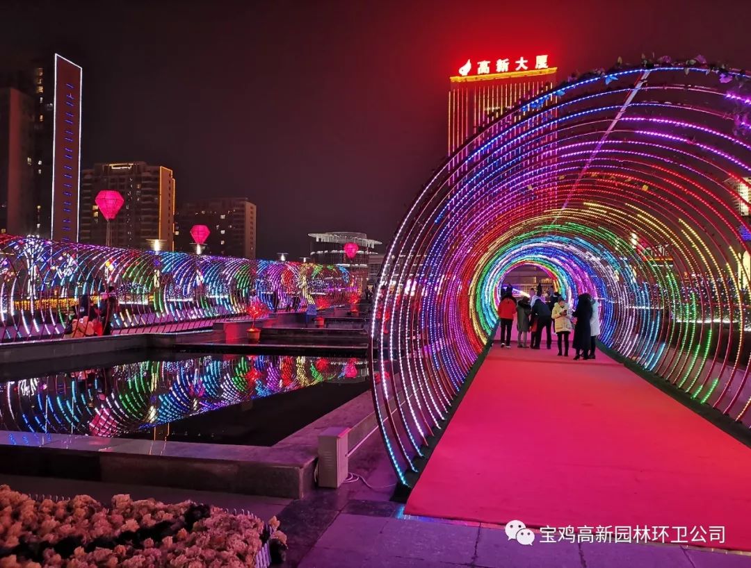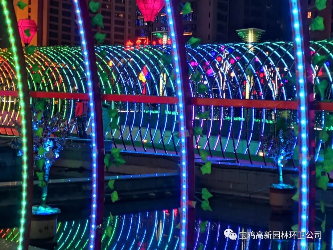 此次亮化工作,通过合理点缀与原有景观亮化、灯杆行道树相互映照来渲染节日喜庆氛围,融合中国传统文化与现代气息相结合,彰显时代特色,扮靓高新大道、滨河路、宝钛路、科技新城、高新广场、滨水生态园、渭河公园的夜景,使高新区呈现出红红火火、张灯结彩、欢乐祥和、喜气洋洋的节日景象。