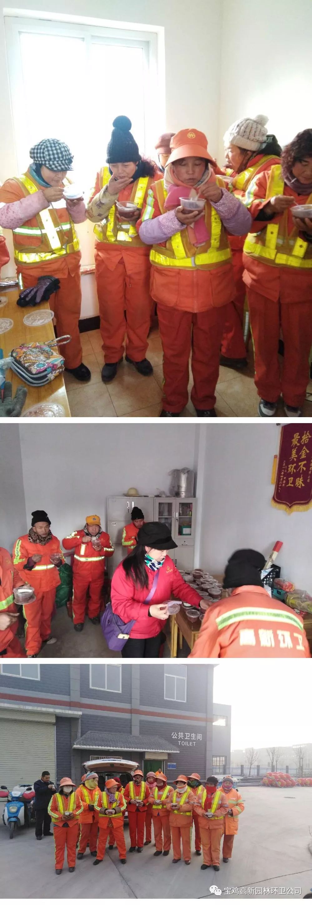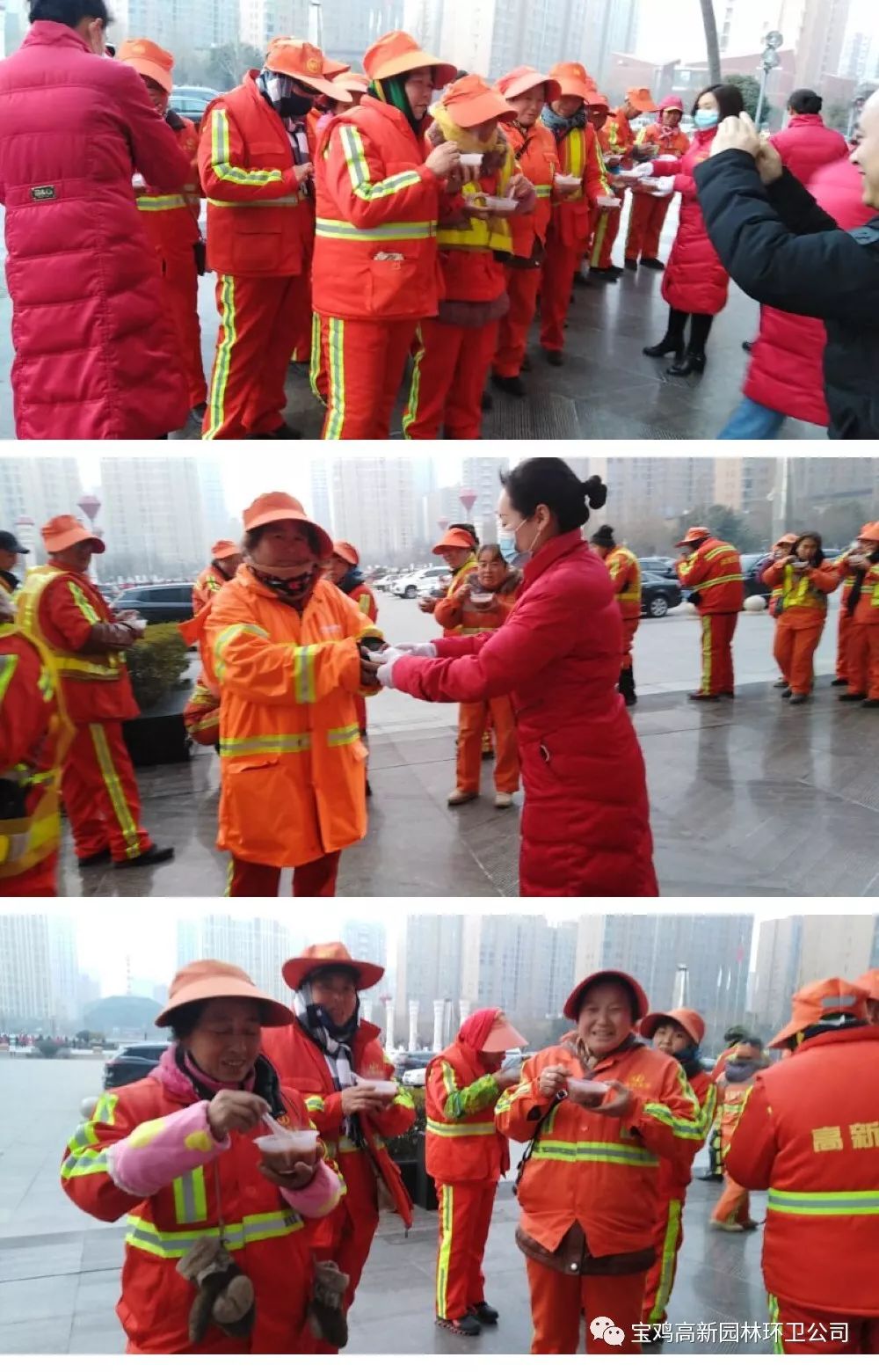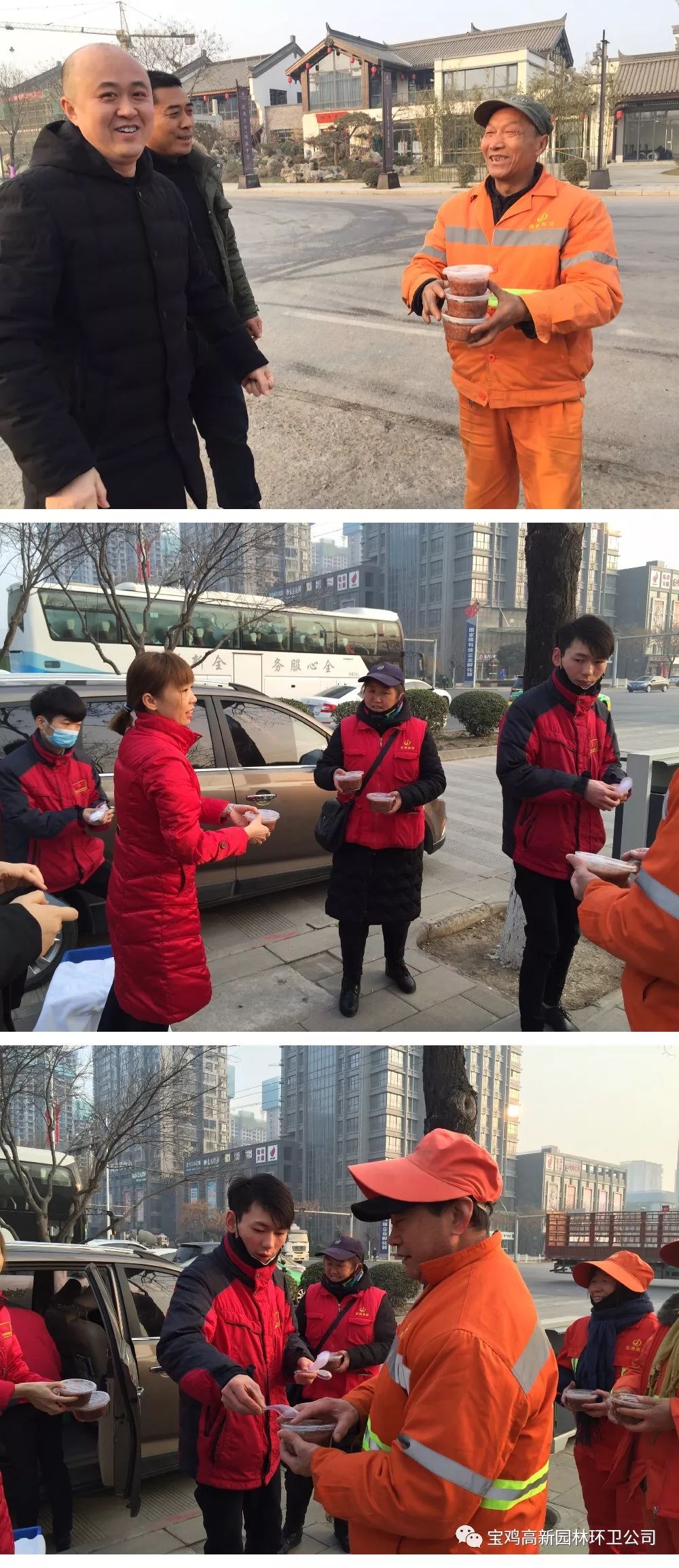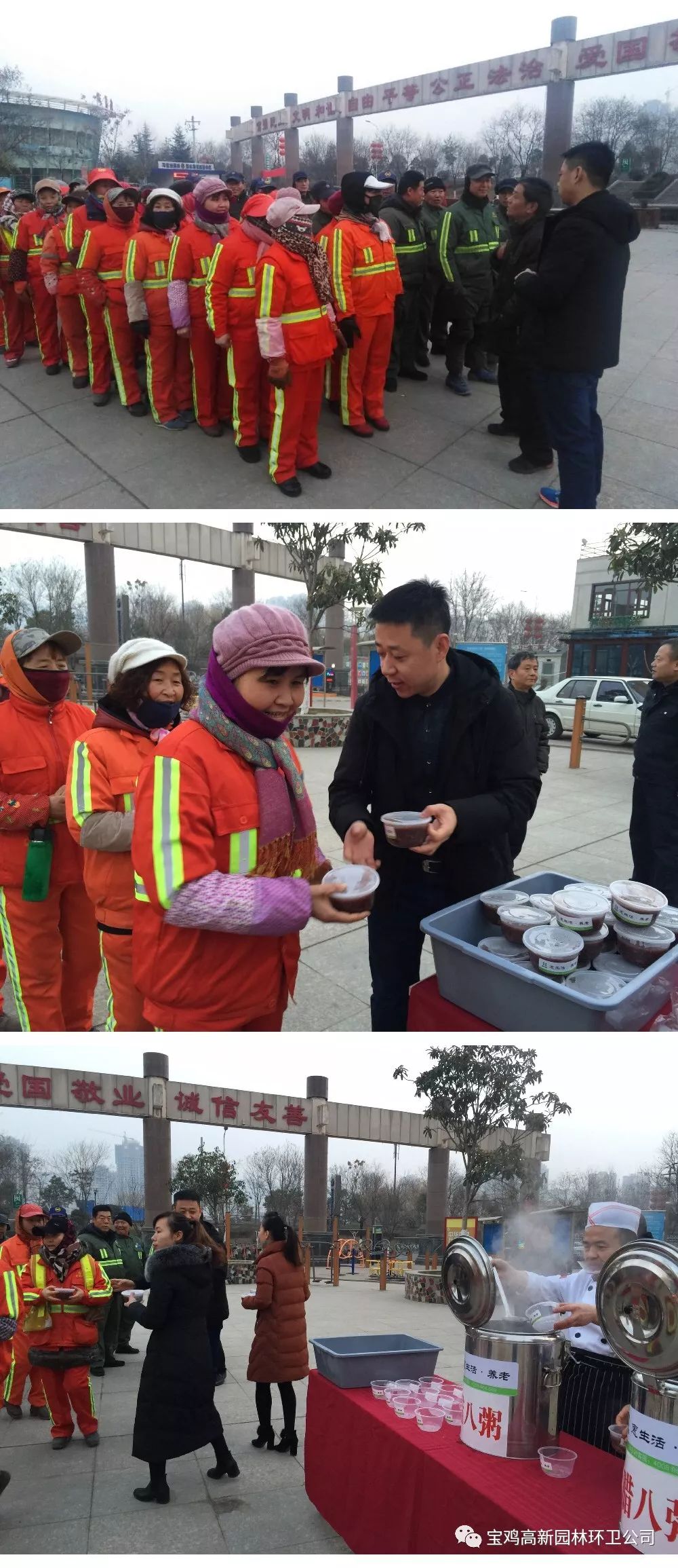 俗话说,过了腊八就是年。1月13日,君悦酒店和宝鸡惠生活颐养中心开展的爱心送粥活动,着实让环卫工人们提前感受到年的温暖。一碗香甜、热乎的腊八粥,一句贴心的问候,让刚刚忙碌完晨扫的环卫师傅们心里暖暖的。